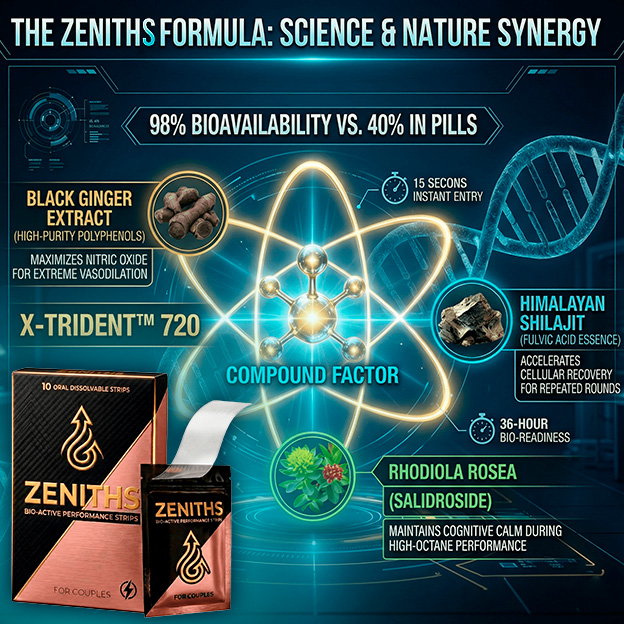 The Law of Peak Performance: 15-Second Sync Science ZENITHS redefines intimacy with a sublingual nano-film that permeates in just 15 seconds, bypassing the digestive tract to deliver 100% bio-activity directly into the bloodstream. This exclusive "Tri-Nano Stacking" formula synchronizes male blood-flow intensity with female sensory sensitivity in under 15 minutes, ending the "Orgasm Gap" forever. Engineered for dual-action awakening, it recalibrates the peak thresholds for both partners and maintains a stable 36-hour biological window. No more planning, no more performance anxiety—just raw, synchronized explosive power and rock-solid reliability that lasts the entire weekend.